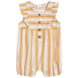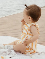 Parfaite pour une journée ensoleillée, cette barboteuse à rayures orange arbore un joli style rétro. La coupe droite et les jambes élastiques donnent à bébé la liberté de bouger pour explorer son environnement. La barboteuse présente des détails volantés et des boutons sur le devant pour faciliter les changements par la tête. La barboteuse est fabriquée dans un sergé léger, frais et respirant, et peut être portée toute la journée.