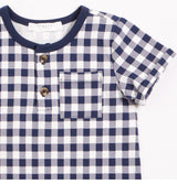 Cette adorable barboteuse à imprimé vichy classique est parfaite pour un pique-nique de printemps. Avec sa coupe ample et ajustée, elle est agrémentée d’ourlets relevés au niveau des jambes et des poignets, et de boutons-pression en bas pour faciliter les changements de couches. Les boutons en haut de la barboteuse créent un look rétro. Elle est fabriquée à partir de jersey de coton biologique, doux et respirant pour la peau de bébé.