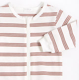 Cette dormeuse de style rétro présente notre motif à rayures « Red Rock » parfait pour une journée en poussette ou pour faire une petite sieste à la maison. Fabriquée en jersey de coton biologique, la dormeuse est incroyablement douce et légère sur la peau de bébé. Les pieds intégrés et les poignets élastiques rendent la dormeuse encore plus confortable et facile à porter. Une fermeture éclair sur toute la longueur de la dormeuse et le long de la jambe permet des changements rapides et faciles. Le protège-zip en tissu est conçu pour protéger le menton de bébé.