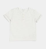 Ce t-shirt simple convient aussi bien pour un look décontracté que pour un look chic. Avec ses fines rayures, ce haut est idéal pour le printemps et l'été. Les boutons sur le devant du t-shirt lui donnent un style rétro, mais permettent également de s'habiller rapidement lors des matins plus frais. Fabriqué en jersey de coton biologique, ce haut est légèrement extensible et est suffisamment léger et confortable pour être porté toute la journée.