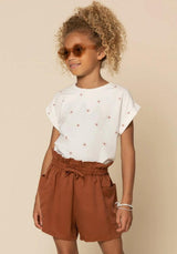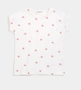 Ce t-shirt simple présente un joli imprimé de marguerites sur toute sa surface. Parfait pour être porté avec des joggings roses de la même gamme, ou des shorts et des jupes, ce haut est parfait pour jouer toute la journée. La coupe droite et l’encolure arrondie rendent le haut facile à enfiler et à enlever. Il est fabriqué à partir de jersey de coton biologique, donc il est légèrement extensible pour une tenue confortable toute la journée.