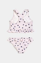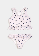 Cet ensemble tankini 2 pièces amusant présente un imprimé à pois et des volants. Il est idéal pour barboter dans la piscine ou pour une journée à la plage ce printemps. Faisant partie de notre toute première collection de maillots de bain, cet ensemble est fabriqué en nylon recyclé, ce qui en fait un choix écologique ! Il offre également une protection solaire UPF 50+, mais nous vous recommandons tout de même d'utiliser une bonne couche de crème solaire !