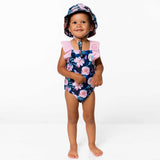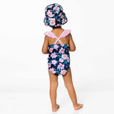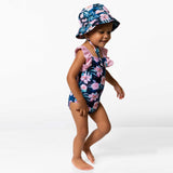 Les bretelles à volants ajoutent du style et de la texture à notre Maillot de bain 1 pièce imprimé floral bleu marin. Cet adorable maillot de bain présente un imprimé floral audacieux avec des bretelles roses unies, une encolure droite et des bretelles qui s'entrecroisent dans le dos.