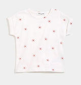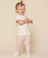 Ce t-shirt simple présente un joli imprimé de marguerites sur toute sa surface. Parfait pour être porté avec des joggings roses de la même gamme, ou des shorts et des jupes, ce haut est parfait pour jouer toute la journée. La coupe droite et l’encolure arrondie rendent le haut facile à enfiler et à enlever. Il est fabriqué à partir de jersey de coton biologique, donc il est légèrement extensible pour une tenue confortable toute la journée.