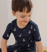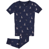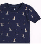 Un sommeil de rêve garanti avec cet ensemble pyjama 2 pièces bleu marine à imprimé « Phare de nuit ». Il est composé d’un haut à manches courtes et d’un pantalon assorti pour garder les enfants au frais toute la nuit. Fabriqué en jersey de coton cultivé organiquement léger et respirant, l'ensemble est légèrement extensible pour que les enfants soient à l'aise lorsqu'ils jouent, dorment et se relaxent. Des articles de la même collection pour les petits frères et sœurs sont également disponibles.