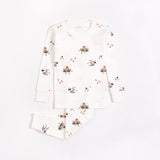 Cet ensemble pyjama 2 pièces est orné de notre motif « Paysages », parfait pour des vacances à la montagne. Composé d'un haut à manches longues à encolure arrondie et d'un pantalon à bande de taille élastique assorti, le pyjama est confortable et facile à porter. Fabriqué en coton biologique, il est léger, respirant et délicat sur la peau de votre enfant.