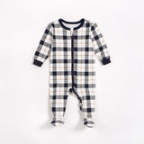 Parfaite pour votre dernier petit cadeau, cette dormeuse à carreaux bleus l'enveloppera joliment tel un joli cadeau de Noël. Confectionnée en coton biologique côtelé et dotée de pieds intégrés et de poignets élastiqués, elle est chaude et super douillette. La longue fermeture éclair sur le devant permet de changer les couches facilement sans avoir à enlever entièrement la dormeuse.